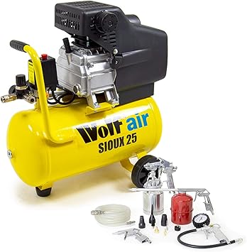 Wolf Sioux 25 Air Compressor 24l 2 5hp 9 6cfm Oil Lubricated 230v 8bar 116psi 13pc Spray Kit Amazon Co Uk Diy Tools