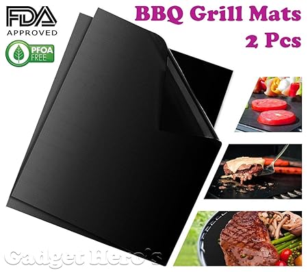 Gadget Hero S Non Stick Barbeque Grill Mats For Bbq And Baking Set Of 2 Amazon In Garden Outdoors