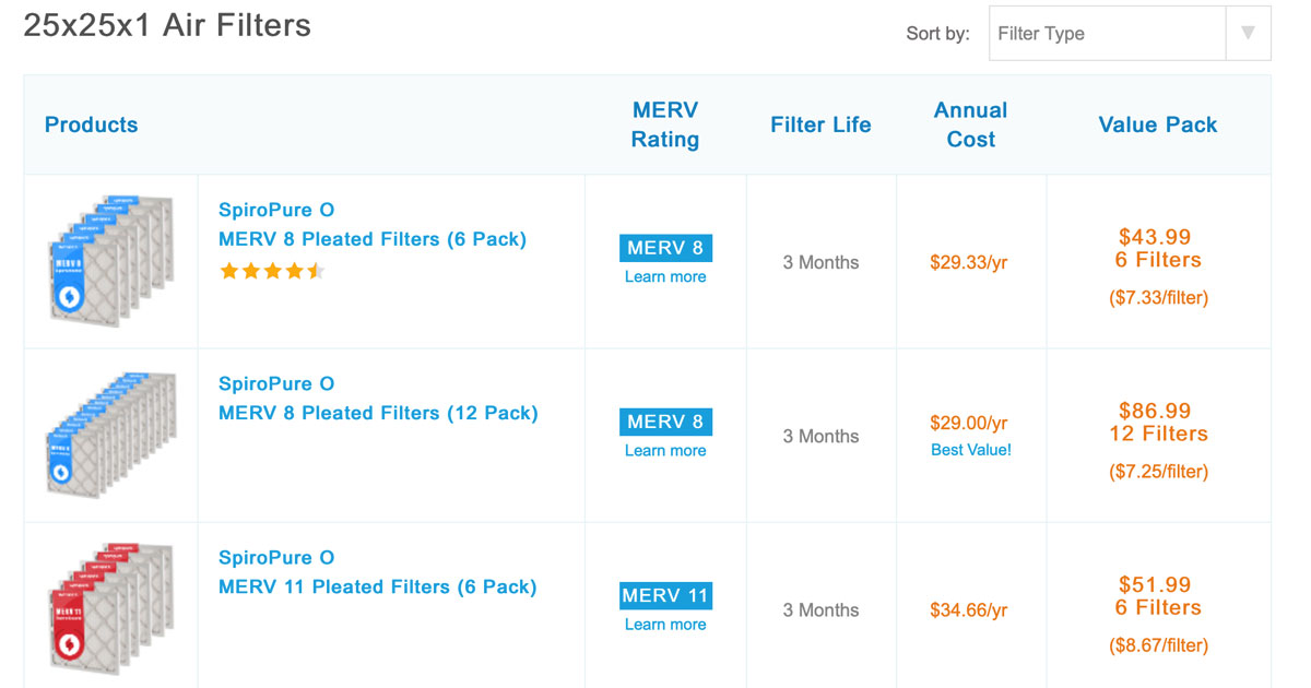 25x25x1 Air Filters Merv 8 11 And 13 On Sale Now
