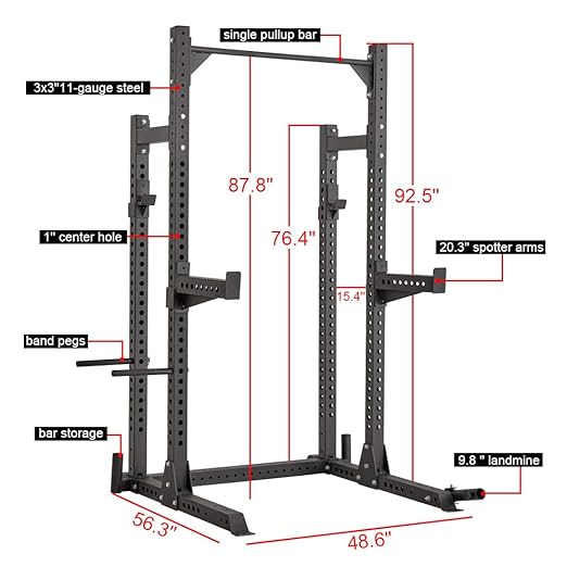 Amgym Commercial Power Cage Squat Rack Multifunction Power Rack Home Gym Equipment Half Rack With Landmines Lift Band Pegs 1500 Lb Capacity Amazon In Sports Fitness Outdoors