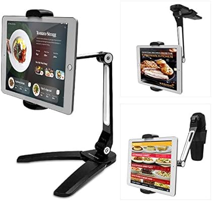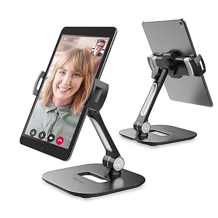 Abovetek long arm aluminum tablet stand folding ipad stand with 360 swivel iphone clamp mount holder fits 4 11 display tablet phones for kitchen table bedside office desk pos kiosk reception.