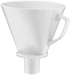 The elongated downspout allows for use with insulated carafes and the cone shape is designed for standard number 4 size filters.