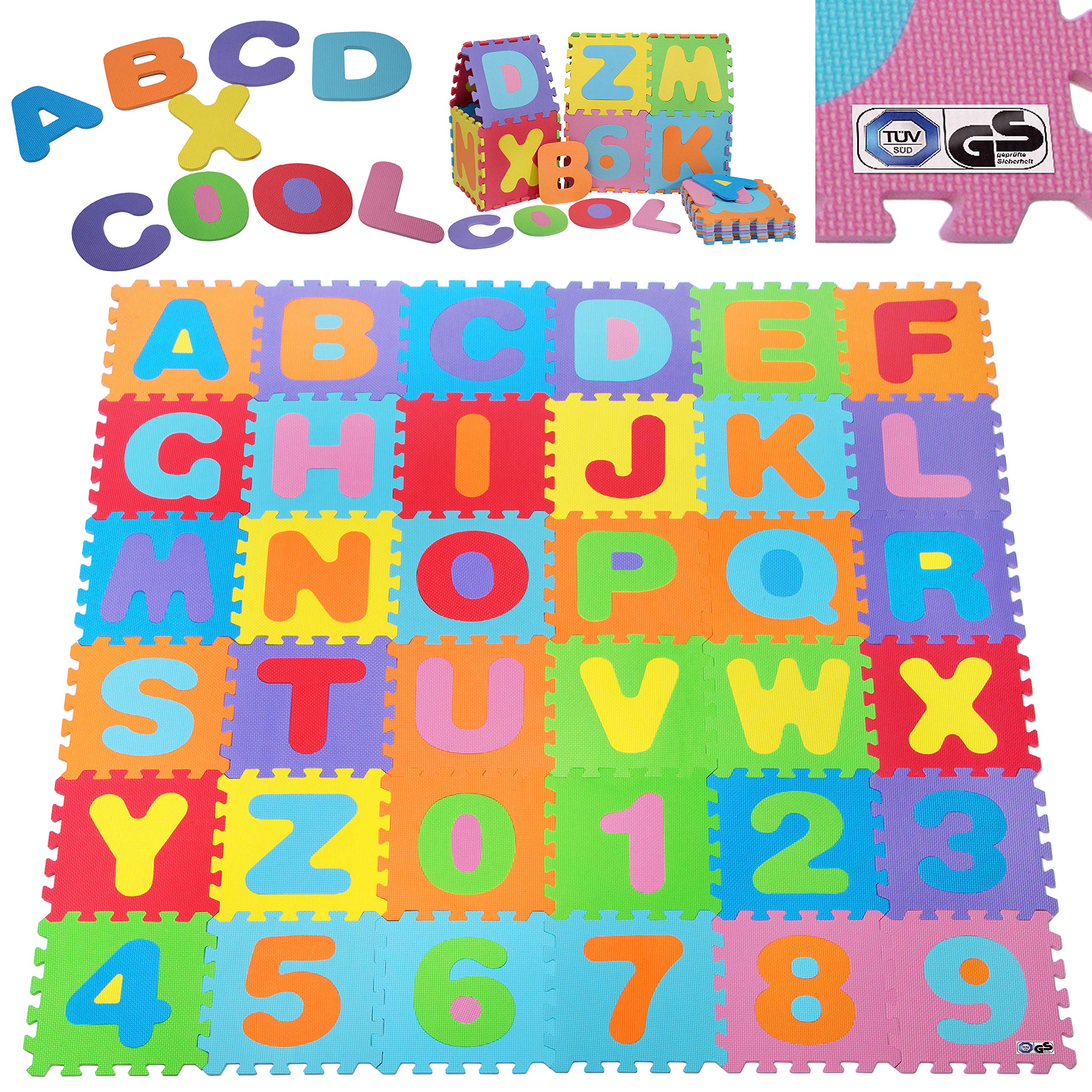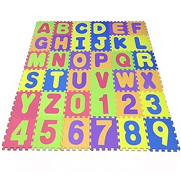 Alphabet And Numbers Foam Puzzle Play Mat Non Toxic Eva 36 Piece Multi Color Children Play Exercise Mat Large Amazon In Toys Games