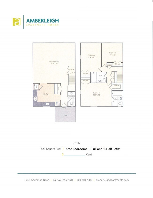 1 2 3 Bedroom Apartments In Fairfax Va Amberleigh Floor Plans