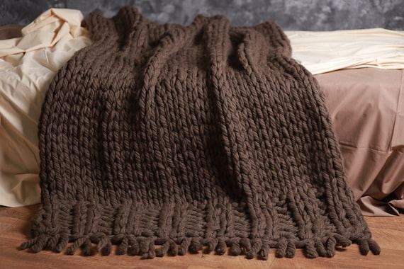 Chunky Knit Blanket Brown Wool Throw Blanket Giant Knit Etsy