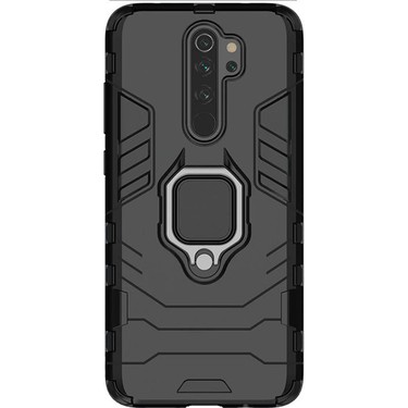 Xiaomi Redmi Note 8 Pro Kilif Yuzuklu Standli Zirh Tank Vega Silikon Siyah